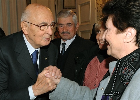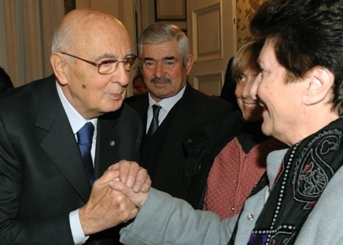 Il Presidente Giorgio Napolitano con la Signora Pinelli, in occasione del'incontro con i Rappresentanti dell'Associazione Piazza Fontana 12 dicembre 1969, del Comitato permanente antifascista e dell'Associazione Italiana Vittime del Terrorismo