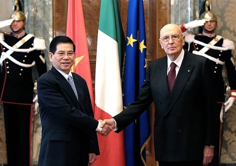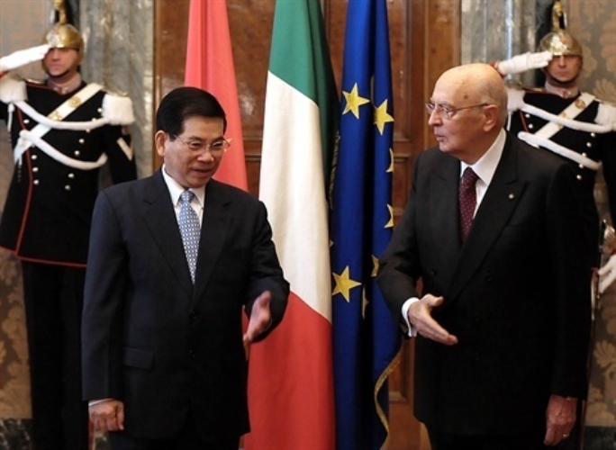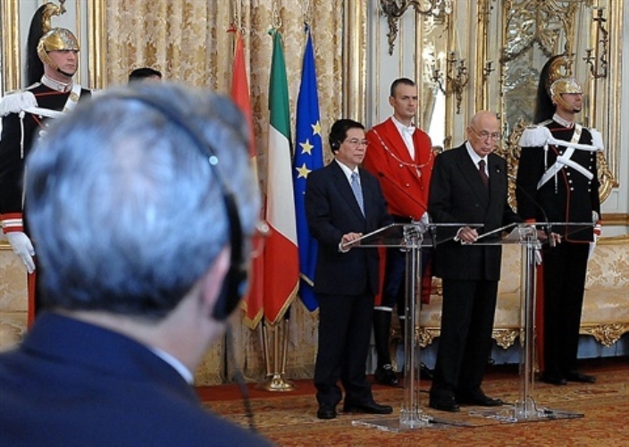 Il Presidente della Repubblica Napolitano con il Presidente della Repubblica Socialista del Vientnam al Quirinale