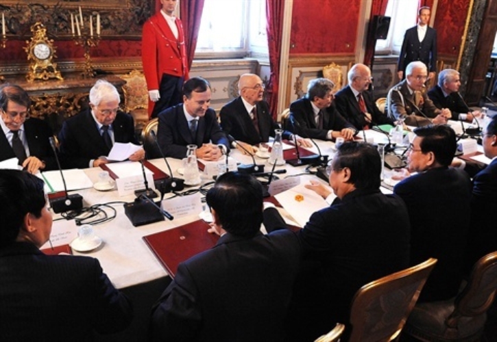Il Presidente Giorgio Napolitano con il Presidente della Repubblica Socialista del Vietnam, Nguyen Minh Triet in visita di Stato in Italia