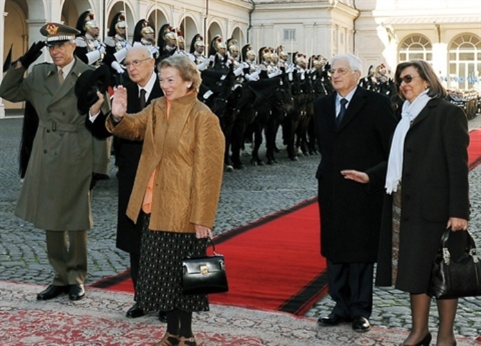 Il Presidente della Repubblica Giorgio Napolitano e la moglie Clio salutano la coppia presidenziale Vietnamita a conclusione della visita di Stato