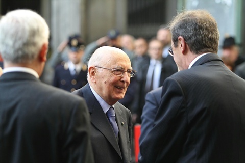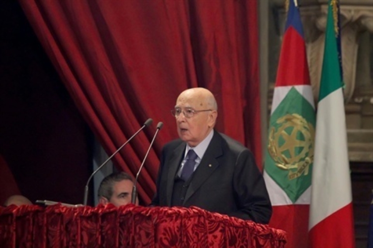 Il Presidente Giorgio Napolitano nel corso della cerimonia di commemorazione per il 50° anniversario della scomparsa di Enrico De Nicola