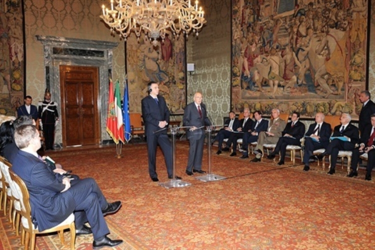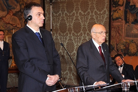 Il Presidente Giorgio Napolitano accoglie il Signor Filip Vujanović, Presidente del Montenegro in visita ufficiale in Italia