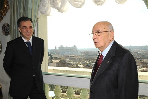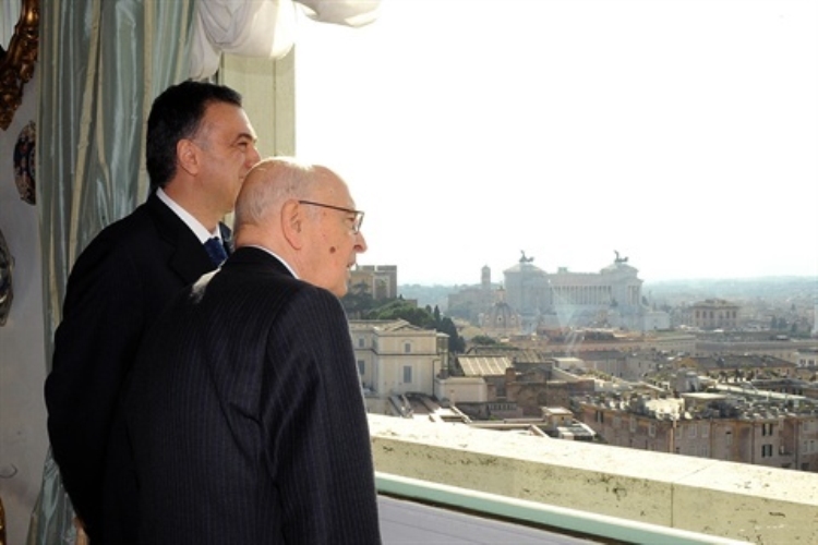 Il Presidente Giorgio Napolitano con Filip Vujanović, Presidente del Montenegro al Belvedere superiore del Torrino.