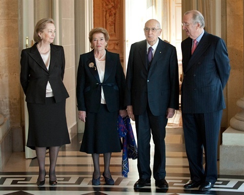 Il Presidente Giorgio Napolitano con S.M. Alberto II Re dei Belgi e le rispettive consorti, al Castello di Laeken, in occasione della visita nel Regno del Belgio