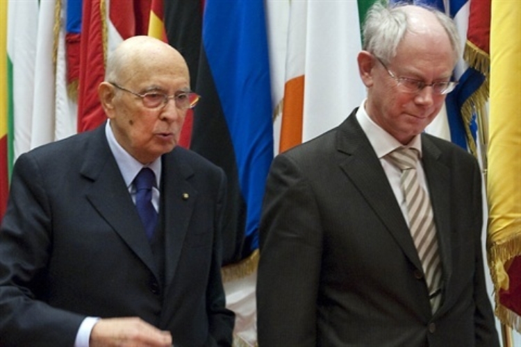 Il Presidente Giorgio Napolitano con il Presidente del Consiglio europeo Herman Van Rompuy al termine dei colloqui