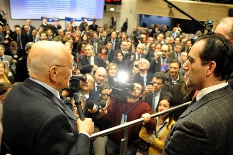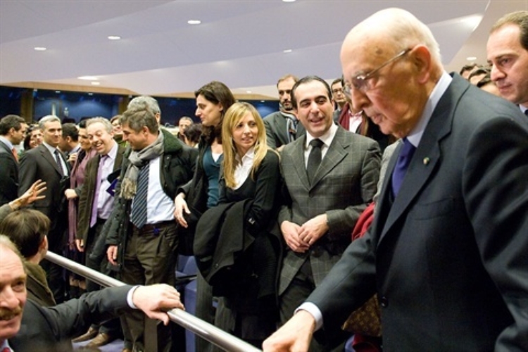 Il Presidente Giorgio Napolitano al termine dell'incontro con il personale italiano in servizio alla Commissione europea