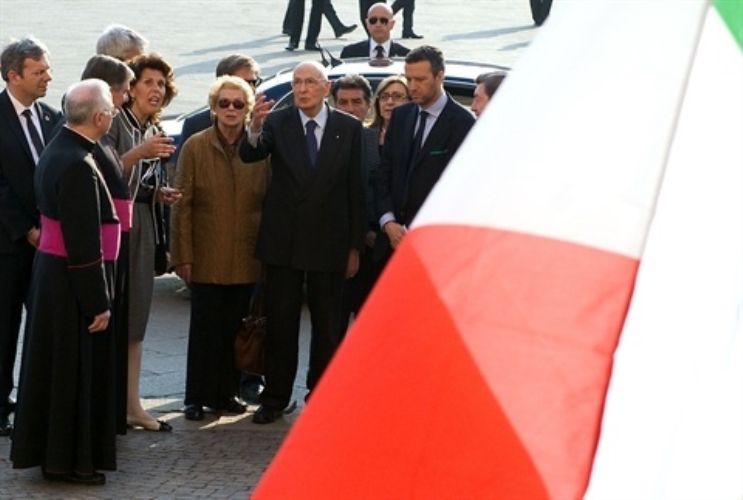 Il Presidente Giorgio Napolitano all'arrivo alla Basilica di San Zeno
