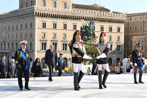 Il Presidente Giorgio Napolitano ascende la Scalea del Vittoriano per rendere omaggio al Milite Ignoto, in occasione del 65° anniversario della Liberazione