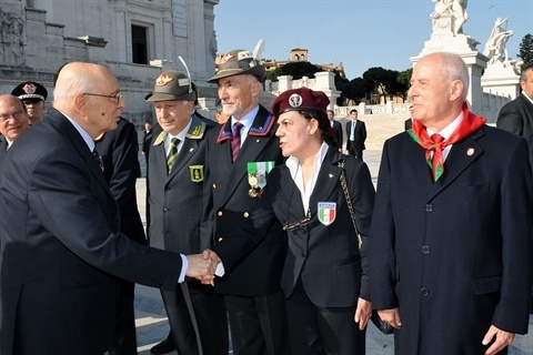 Il Presidente Giorgio Napolitano con i Presidente delle Associazioni Combattentistiche e d'Arma dopo aver reso omaggio al Milite Ignoto, in occasione del 65° anniversario della Liberazione.