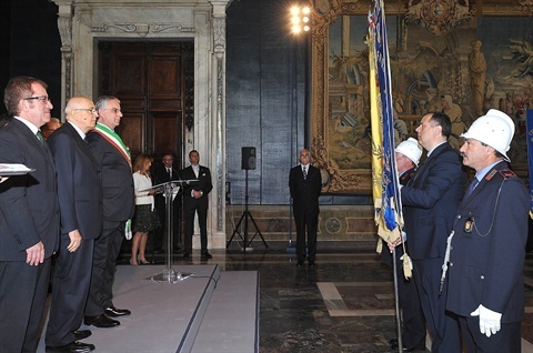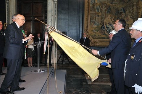 Il Presidente Giorgio Napolitano consegna la Medaglia d'Oro al Merito Civile alla Garfagnana in occasione del 65° anniversario della Liberazione