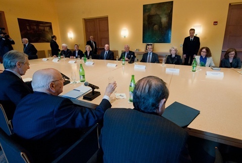 Il Presidente Giorgio Napolitano nel corso dell'incontro con gli esponenti del mondo accademico sul tema della diffusione dell'insegnamento della lingua italiana negli Stati Uniti