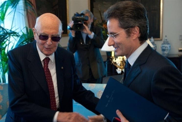 Il Presidente Giorgio Napolitano accoglie a Villa Rosebery Stefano Caldoro, Presidente della Giunta Regionale della Campania