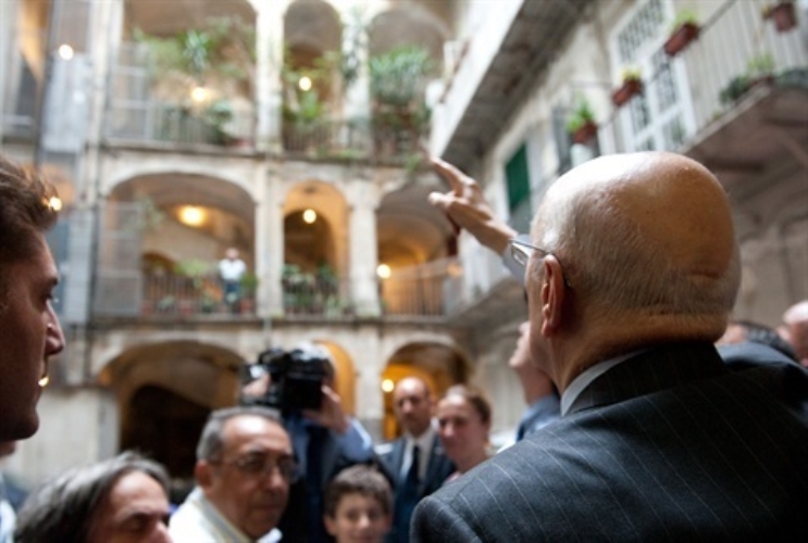 Il Presidente Giorgio Napolitano sulla terrazza dell'abitazione che è stata la sua residenza privata per 35 anni, in Via Monte di Dio