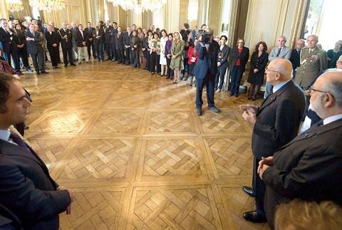 Il Presidente Giorgio Napolitano nel corso dell'incontro con il personale dell'Ambasciata d'Italia a Parigi