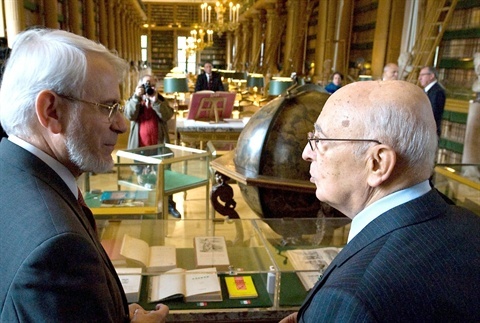 Il Presidente Giorgio Napolitano nel corso della visita alla Biblioteca Mazarine, presso l'Institut de France