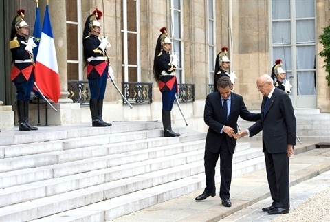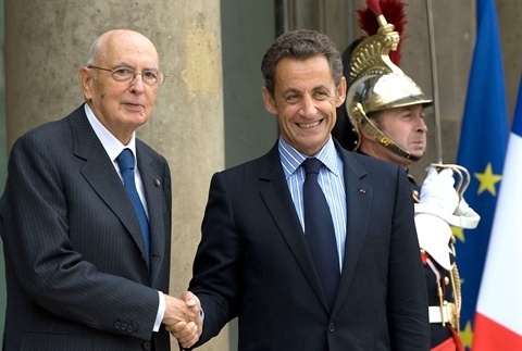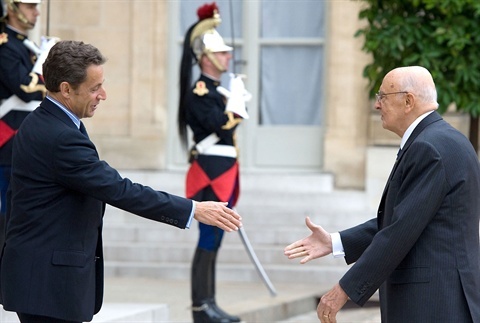 Il Presidente della Repubblica Giorgio Napolitano con il Presidente della Repubblica Francese Nicolas Sarkozy
