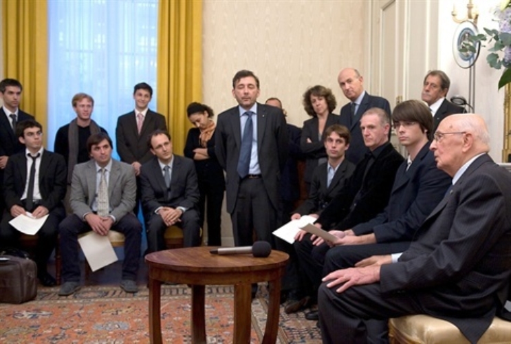 Il Presidente Giorgio Napolitano nel corso dell'incontro con alcuni ricercatori e dottorandi del Laboratorio "Italie, France et Méditerranée", a margine del convegno italo-francese su "Cavour l'europeo e la rivoluzione diplomatica" presso l'Ecole Normale Supérieure