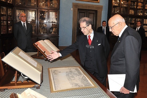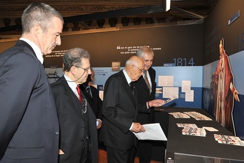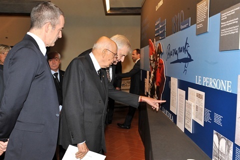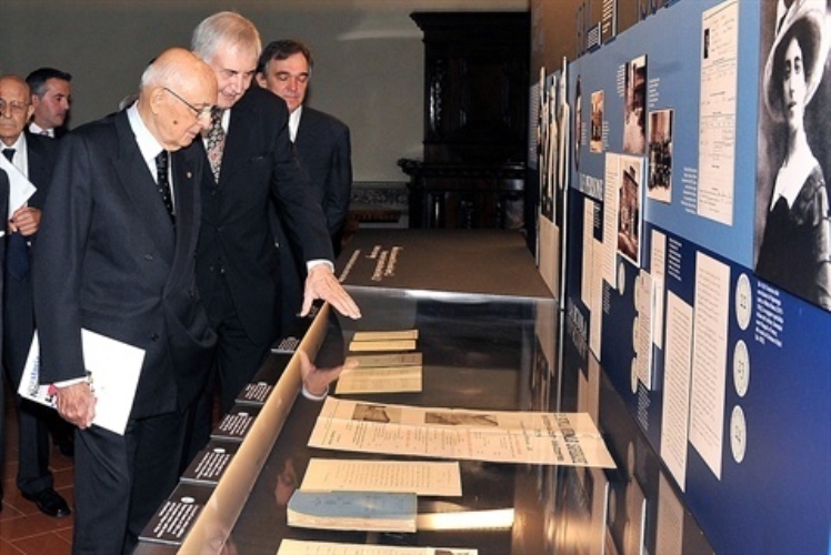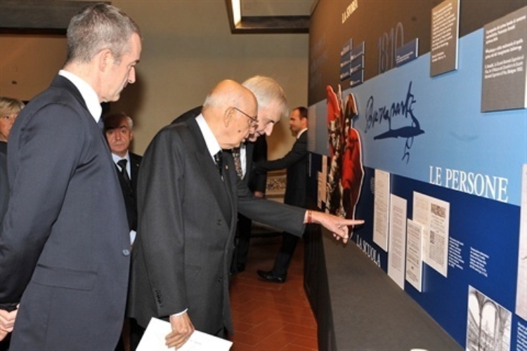 Il Presidente Giorgio Napolitano nel corso della visita alla Mostra "Una storia normale" in occasione del bicentenario della fondazione della Scuola Normale Superiore