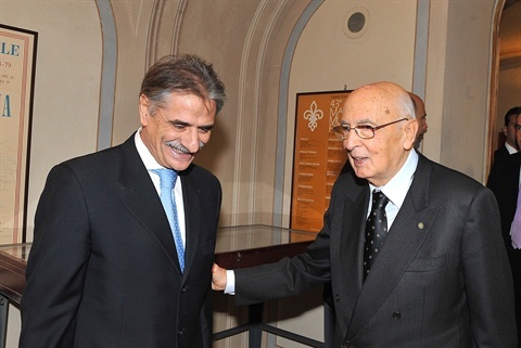 Il Presidente Giorgio Napolitano con il neo-rettore di Pisa Massimo Augello in occasione della cerimonia celebrativa del bicentenario della fondazione della Scuola Normale Superiore