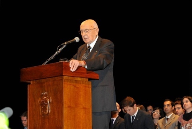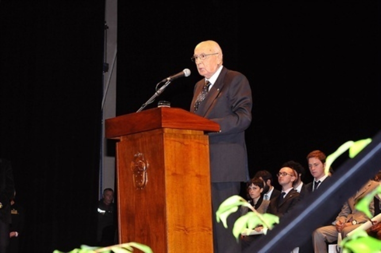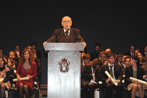 Il Presidente Giorgio Napolitano durante il suo intervento alla cerimonia celebrativa del bicentenario della fondazione della Scuola Normale Superiore
