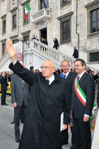 Il Presidente Giorgio Napolitano al suo arrivo alla Scuola Normale Superiore in occasione della cerimonia celebrativa del bicentenario della fondazione