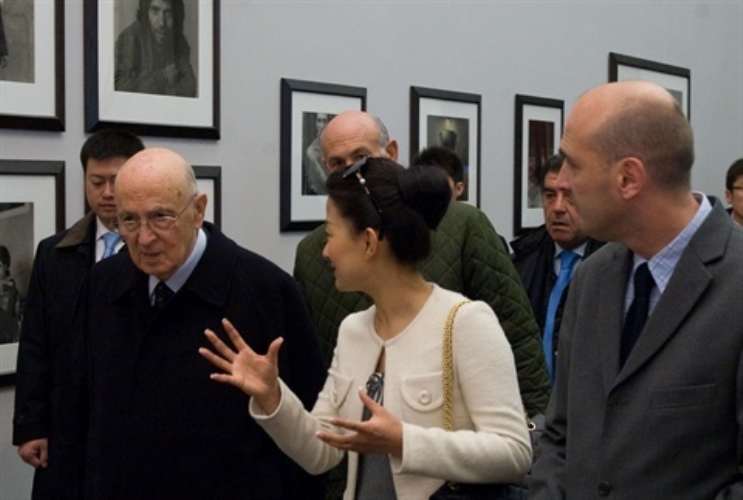 Il Presidente Giorgio Napolitano nel corso della visita all'Ullens Center for Contemporary Art