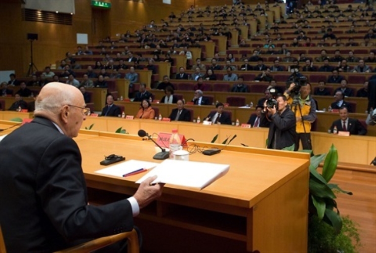 Il Presidente Giorgio Napolitano nel corso dell'incontro con i componenti della Scuola Centrale del Partito Comunista cinese