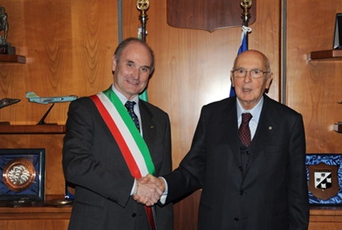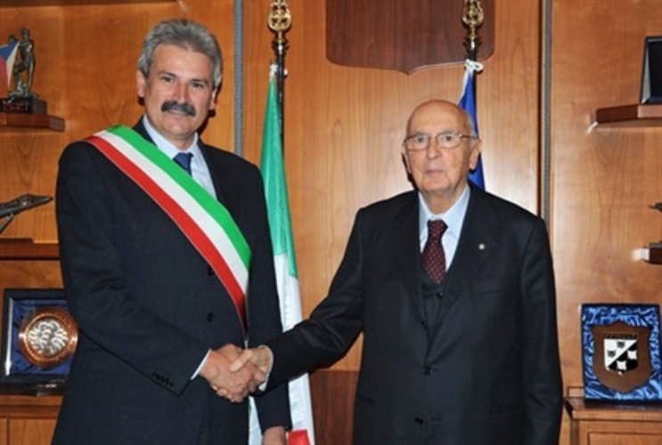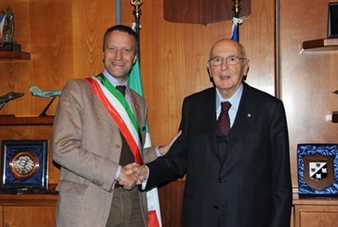 Il Presidente Giorgio Napolitano con il Sindaco di Monteforte d'Alpone Carlo Tessari