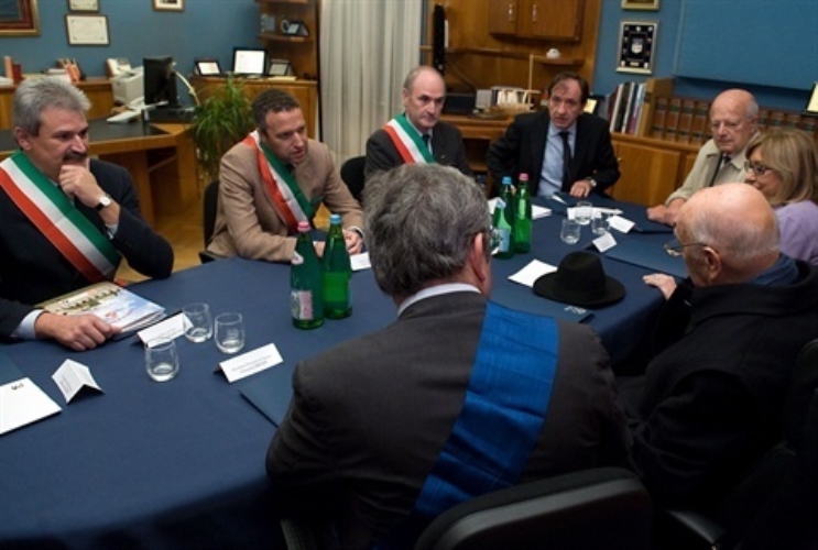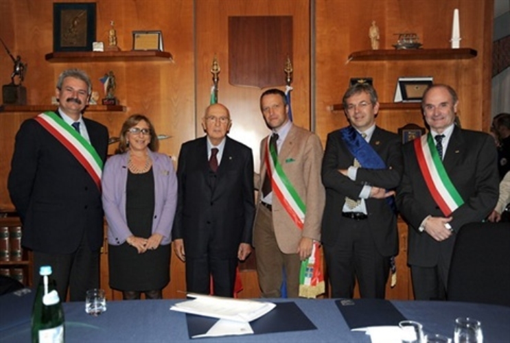 Il Presidente della Repubblica Giorgio Napolitano durane l'incontro con i Sindaci di Soave, Lino Gambaretto, Verona, Flavio Tosi e Monteforte d'Alpone, Carlo Tessari.