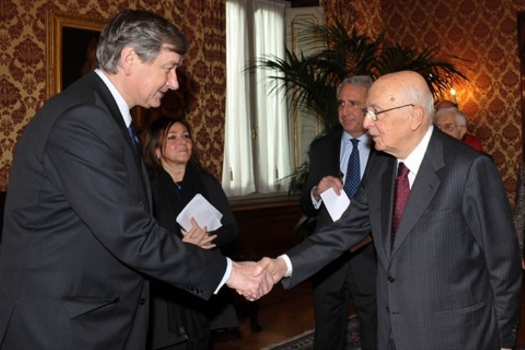 Il Presidente Giorgio Napolitano durante la cerimonia di congedo del Signor Danilo Türk, Presidente della Repubblica Slovena al termine della visita di Stato in Italia