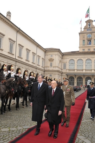 Il Presidente Giorgio Napolitano durante la cerimonia di congedo del Signor Danilo Türk, Presidente della Repubblica Slovena al termine della visita di Stato in Italia