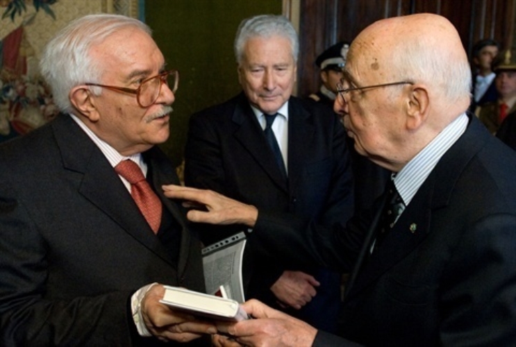 Il Presidente Giorgio Napolitano con Giuseppe Galasso e Renzo Gattegna, Presidente dell'Unione della Comunità Ebraiche Italiane, poco prima della celebrazione del "Giorno della Memoria"
