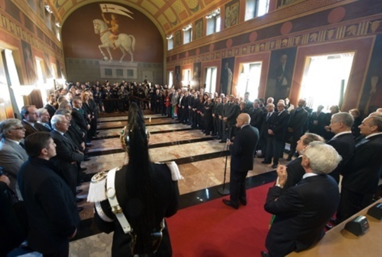 Il Presidente Giorgio Napolitano nel corso dell'incontro con gli Assessori ed i Consiglieri comunali e provinciali, presso l'Aula Consiliare del Comune di Bergamo