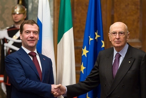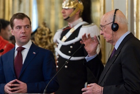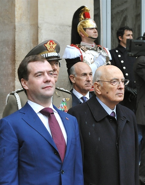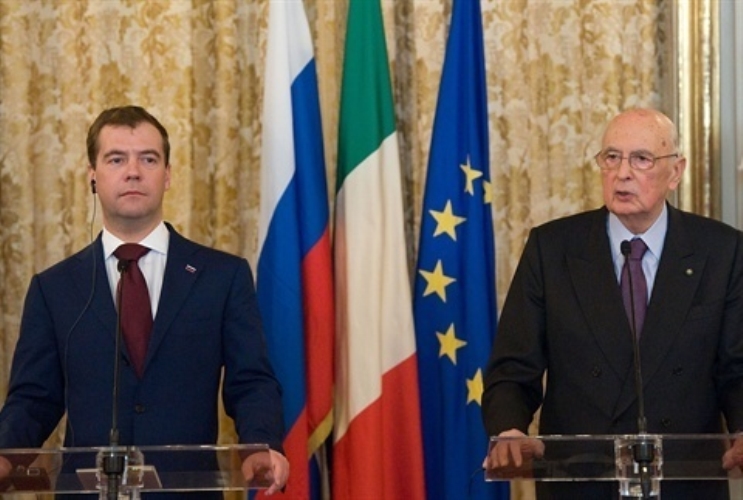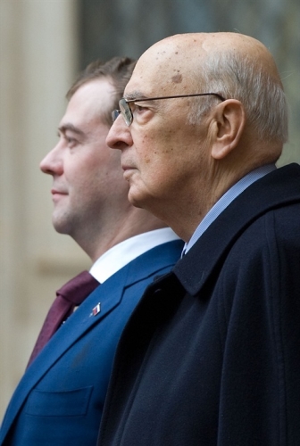 Il Presidente Giorgio Napolitano con Dmitrij Medvedev, Presidente della Federazione Russa in visita ufficiale in Italia