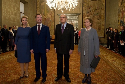 Il Presidente Giorgio Napolitano con il Presidente della Federazione Russa Dmitrij Anatol'evič Medvedev e le rispettive consorti