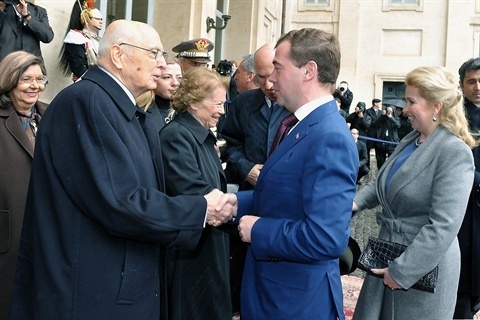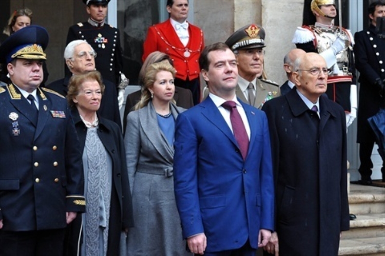 Il Presidente Giorgio Napolitano accoglie Dmitrij Medvedev, Presidente della Federazione Russa in visita ufficiale in Italia