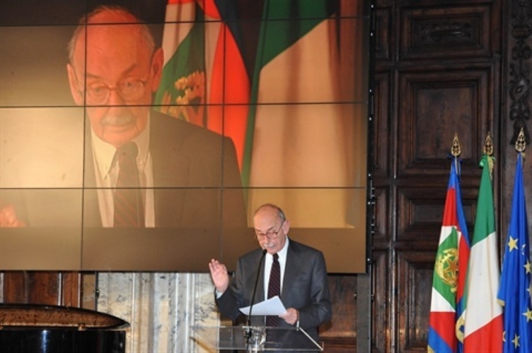 Il Prof. Vittorio Sermonti in occasione della cerimonia su "La lingua italiana fattore portante dell'identità nazionale".