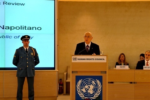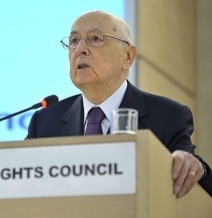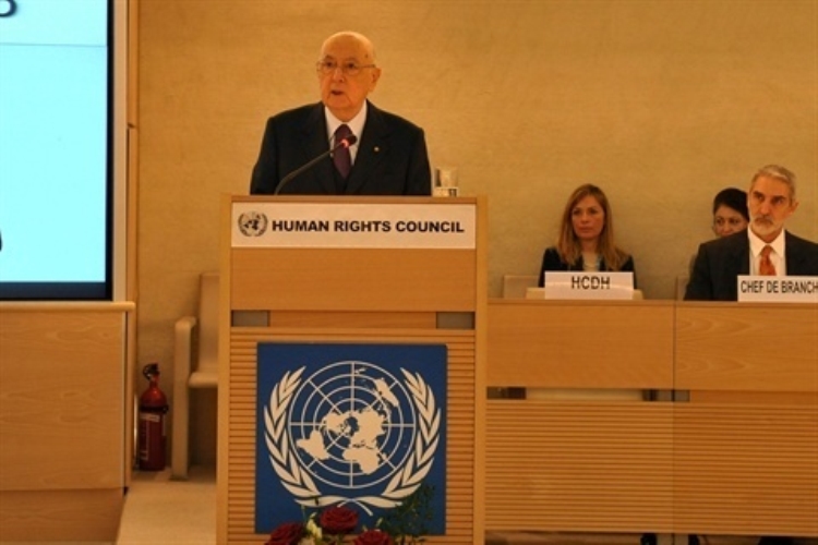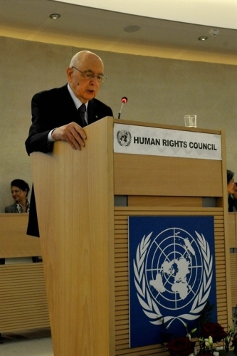 Il Presidente della Repubblica Giorgio Napolitano durante il suo intervento al Consiglio per i Diritti Umani