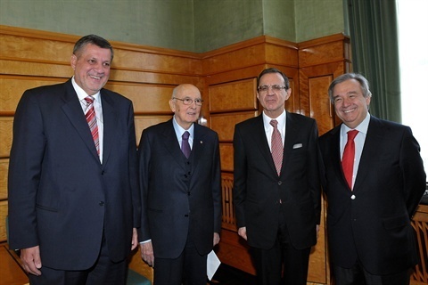 Il Presidente Giorgio Napolitano con Jan Kubis,Sergei A. Ordzonikidze e Antonio Guterres