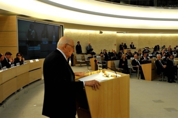Il Presidente Giorgio Napolitano durante il suo intervento al Consiglio per i Diritti Umani