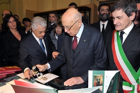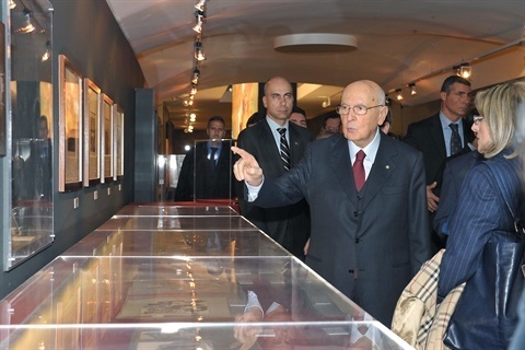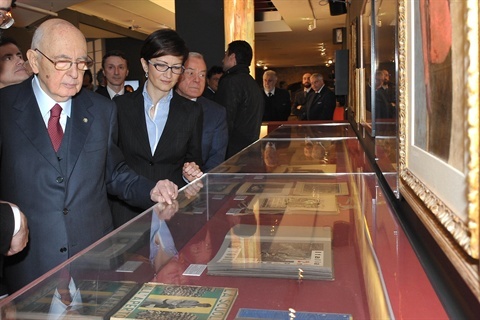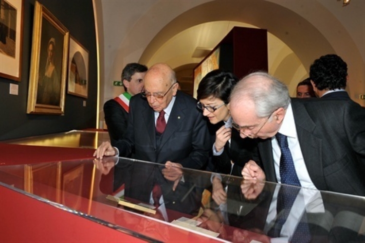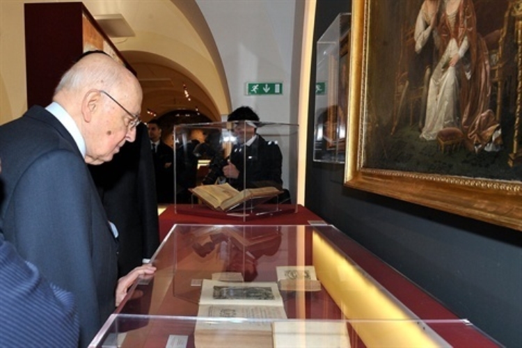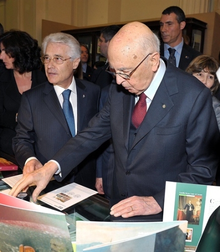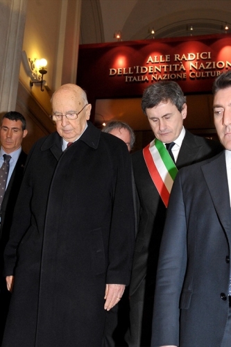Il Presidente della Repubblica Giorgio Napolitano nel corso della visita alla Mostra "Alle radici dell'Identità Nazionale"