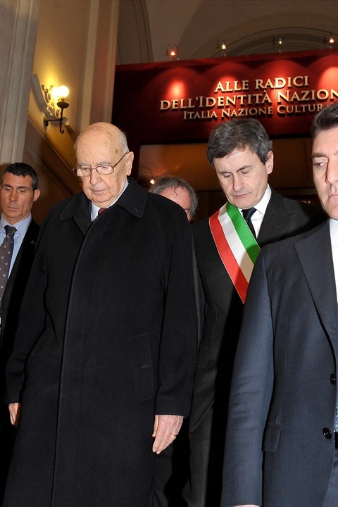 Il Presidente Giorgio Napolitano lascia il Complesso Monumentale del Vittoriano, al termine della visita alla Mostra "Alle radici dell'Identità Nazionale"