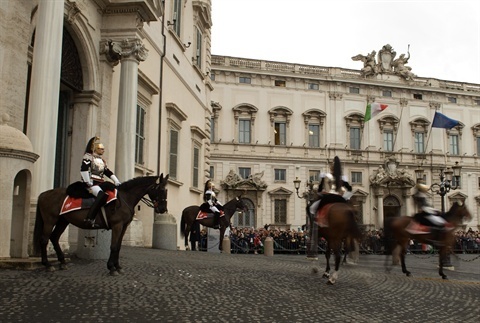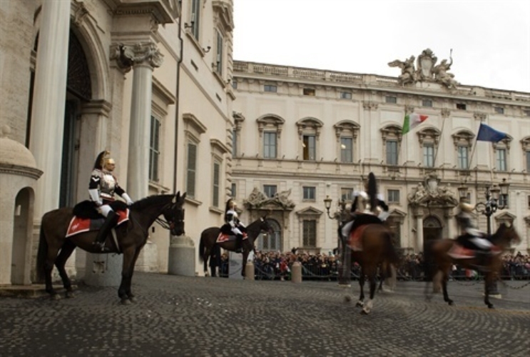 I Corazzieri durante il cambio della Guardia al Palazzo del Quirinale in occasione del 150° anniversario dell'Unità d'Italia