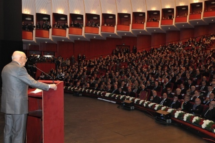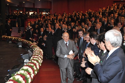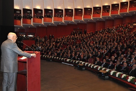 Il Presidente della Repubblica Giorgio Napolitano durante il suo intervento al Teatro Regio