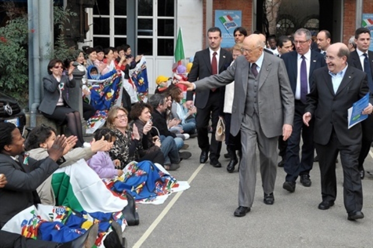 Il Presidente Giorgio Napolitano con il Sig. Ernesto Olivero, Fondatore del Sermig in occasione della cerimonia di consegna del Premio "Artigiano della Pace 2011"