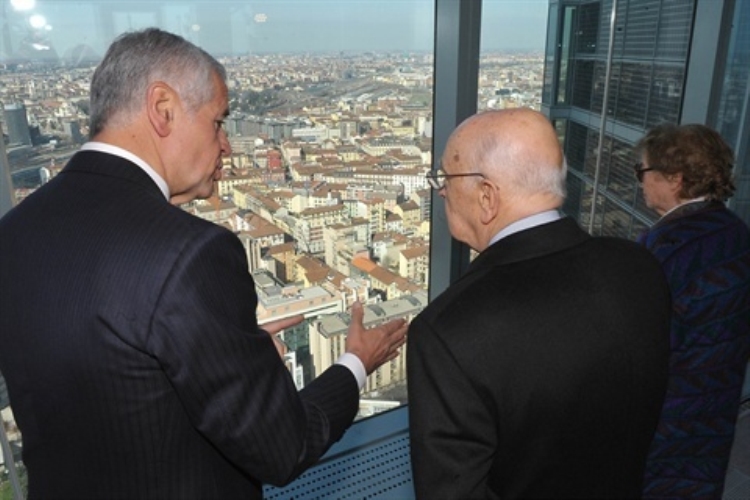 Il Presidente Giorgio Napolitano nel corso della visita a Palazzo Lombardia per la nuova sede della Regione