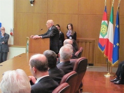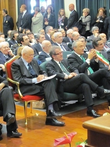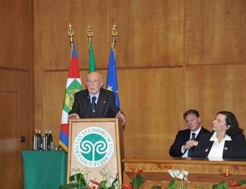 Il Presidente Giorgio Napolitano nel corso del suo intervento all'Università degli Studi dell'Insubria