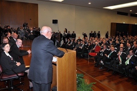 Il Presidente Giorgio Napolitano durante il suo intervento all'Università dell'Insubria