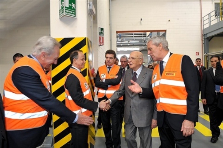 Il Presidente Giorgio Napolitano con il Cav. Lav. Dott. Marco Tronchetti Provera nel corso della visita allo Stabilimento Pirelli