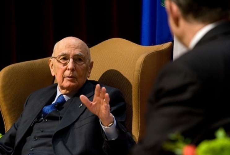 Il Presidente Giorgio Napolitano nel corso della Fireside chat con il Professor Weiler, presso la New York University